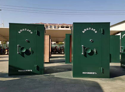 动式炸药库应运而生,它是民用爆炸物品库房的一种,包含可拆装拼接式活动库房,车载配套整体移动库房,移动车载石棉雷管箱,活动式车载石棉炸药柜